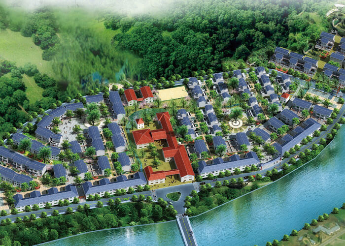 社會主義新農村民居建設,不是簡單地拷貝和復制中國傳統院落形式。運用于本案,我們不是在進行仿古建筑的設計,我們摒棄過于復雜與太過傳統的斗拱、椽檁等建筑符號。抽取傳統院落中的白墻、青瓦、庭院等符號,重新融合構置進全新的建筑肌理之中,賦予現代院落以生命,使其融入現代生活,成為我們的生活中的一部分。在沿街的建筑設計中,采用聯排式、開敞式設計,形成一種商業氛圍,與環境設計中的廣場、露天舞臺等一起,服務于旅游,讓游客不止成為過客,讓游客留下來,有玩、有住、有看,有紀念品買。
