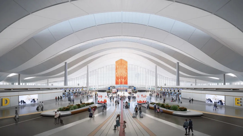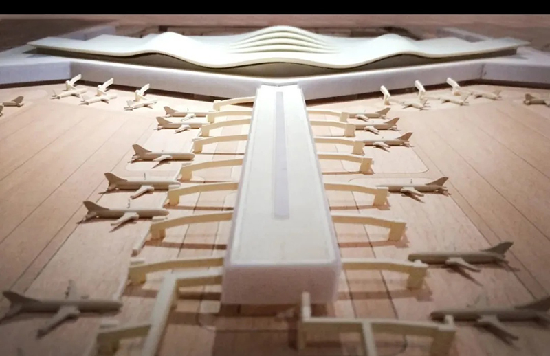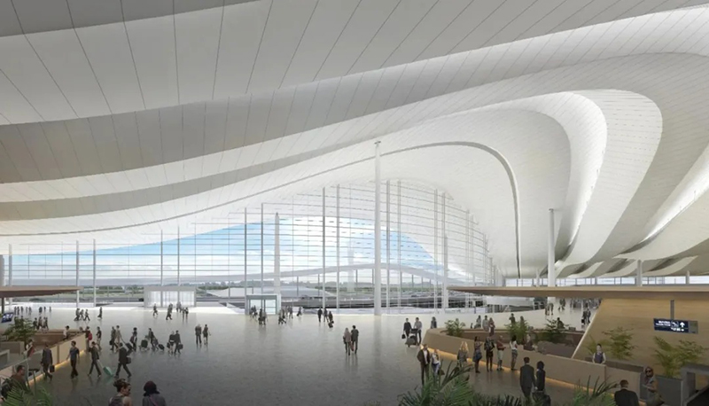 烏魯木齊天山國(guó)際機(jī)場(chǎng)的擴(kuò)建工程是國(guó)家“十三五”“十四五”重點(diǎn)建設(shè)項(xiàng)目,總投資約520億元,規(guī)劃建設(shè)兩條4F級(jí)跑道、50萬平方米的T4航站樓、177個(gè)停機(jī)位及綜合交通中心等設(shè)施;航站區(qū)采用“主樓+三指廊”構(gòu)型,地上四層、地下一層,可容納年旅客吞吐量3500萬人次,貨郵吞吐量55萬噸