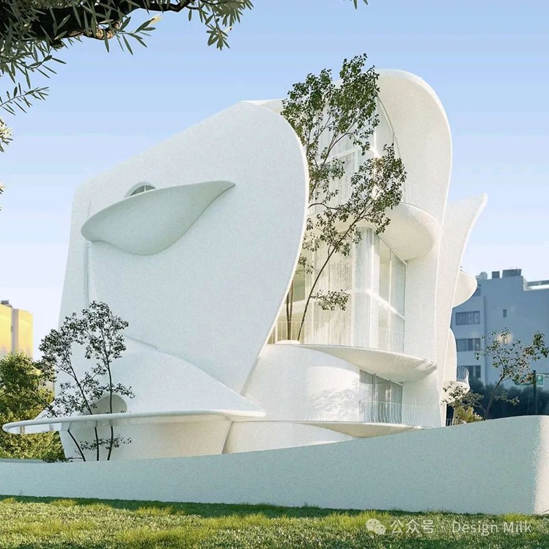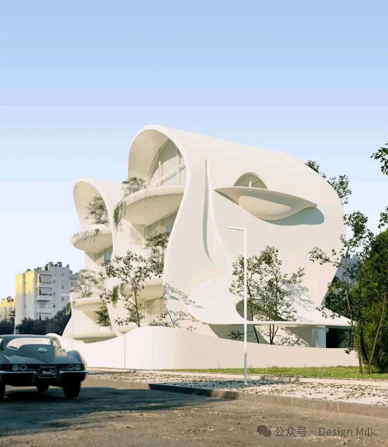 314 建筑工作室設(shè)計的新建筑以其雕塑形式和流暢的線條為特色,營造出一種運動和活力的感覺。 建筑的正面以流暢的曲線和有機形狀為特征,類似于巨大、飄逸的窗簾或時間凝固的波浪。 這些元素賦予建筑一種柔軟和流動的感覺,與城市建筑中常見的剛性線條形成鮮明對比。